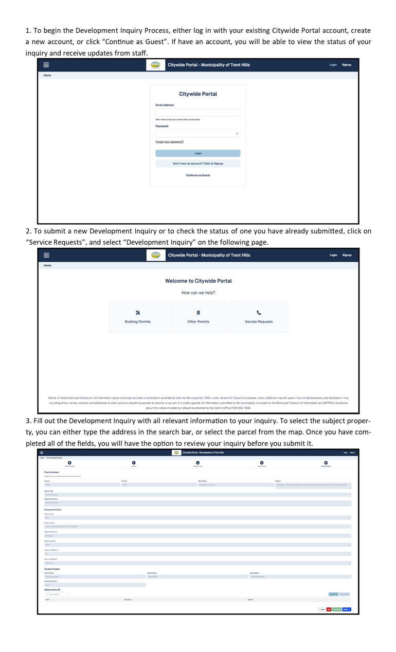 The Development Inquiry Form will remain in effect throughout January of 2026 as we transition over to the Citywide Portal.